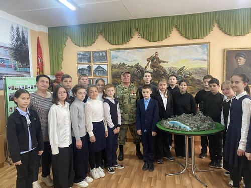 19 ноября 2025 года в нашей школе состоялась волнующая встреча с нашим односельчанином, Андрияновым Евгением Николаевичем, участником специальной военной операции. Его визит стал для ребят не просто формальным мероприятием, а настоящим уроком мужества и патриотизма.