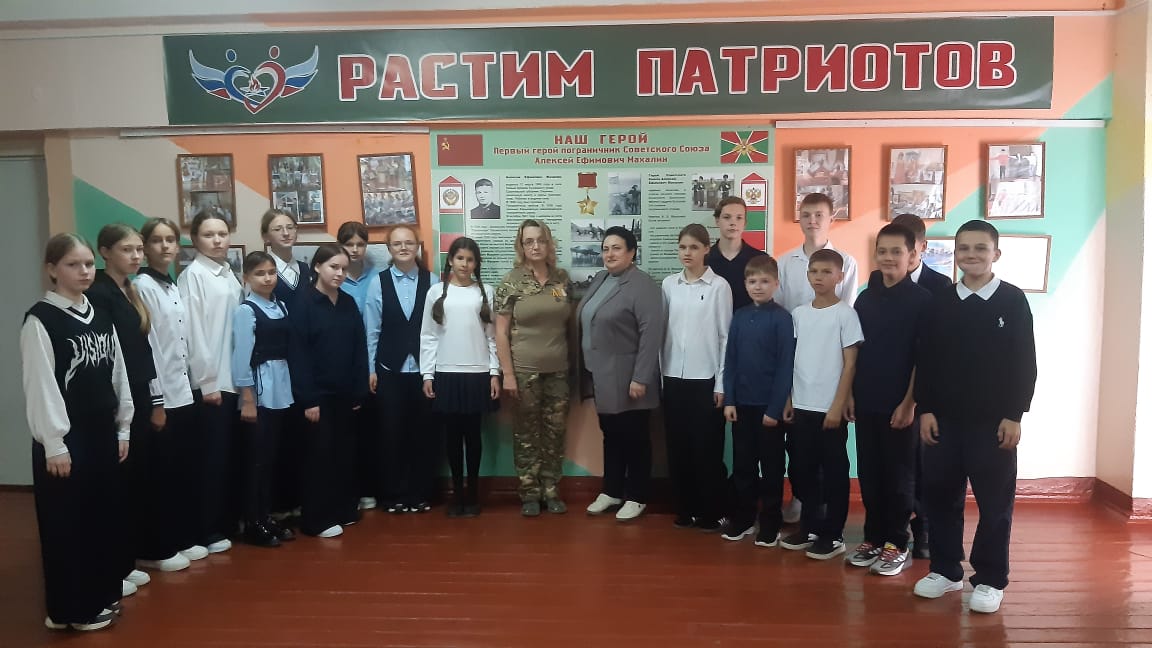 22 октября 2025 г. учащиеся МБОУ СОШ с. Махалино встретились с мамой участников СВО с Радаевой Анной Ивановной. Мать проводила в зону СВО двоих сыновей. Виктор Александрович ушел по контракту, Иван Александрович получил повестку и отправился на зону СВО. Анна Ивановна нашла в себе силы рассказать ученикам о своих сыновьях. Наверное, нет такого дня, чтобы материнское сердце не терзалось о сыновьях. Даже при общении с нами, она несколько раз вытирала подступающие слезы. Ребята с большим вниманием выслушали рассказ о детстве сыновей, об учёбе в нашей школе, посмотрели фотографии.